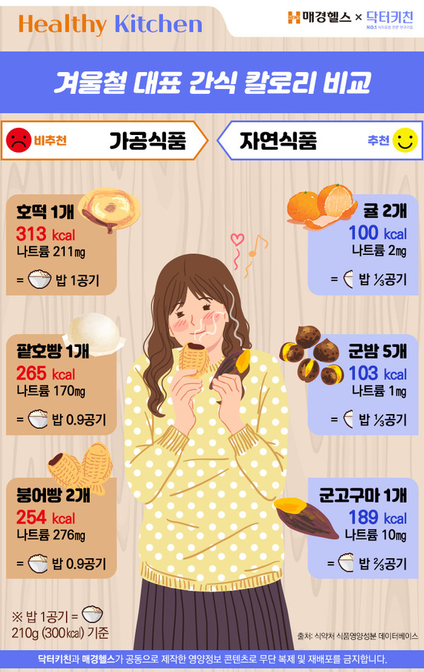 겨울철 대표 간식 칼로리, 열량(Kcal) 정리