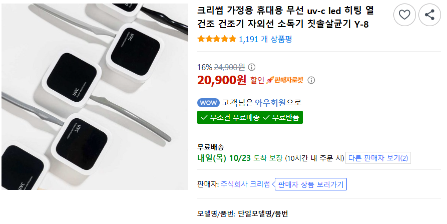 현재 별점 4.9점, 리뷰 1191개를 가진 크리썸 가정용 휴대용 무선 uv-c led 히팅 열건조 건조기 자외선 소독기 칫솔살균기 Y-8! 지금 쿠팡에서 더 저렴하고 다양한 휴대용 제품들을 확인해보세요.